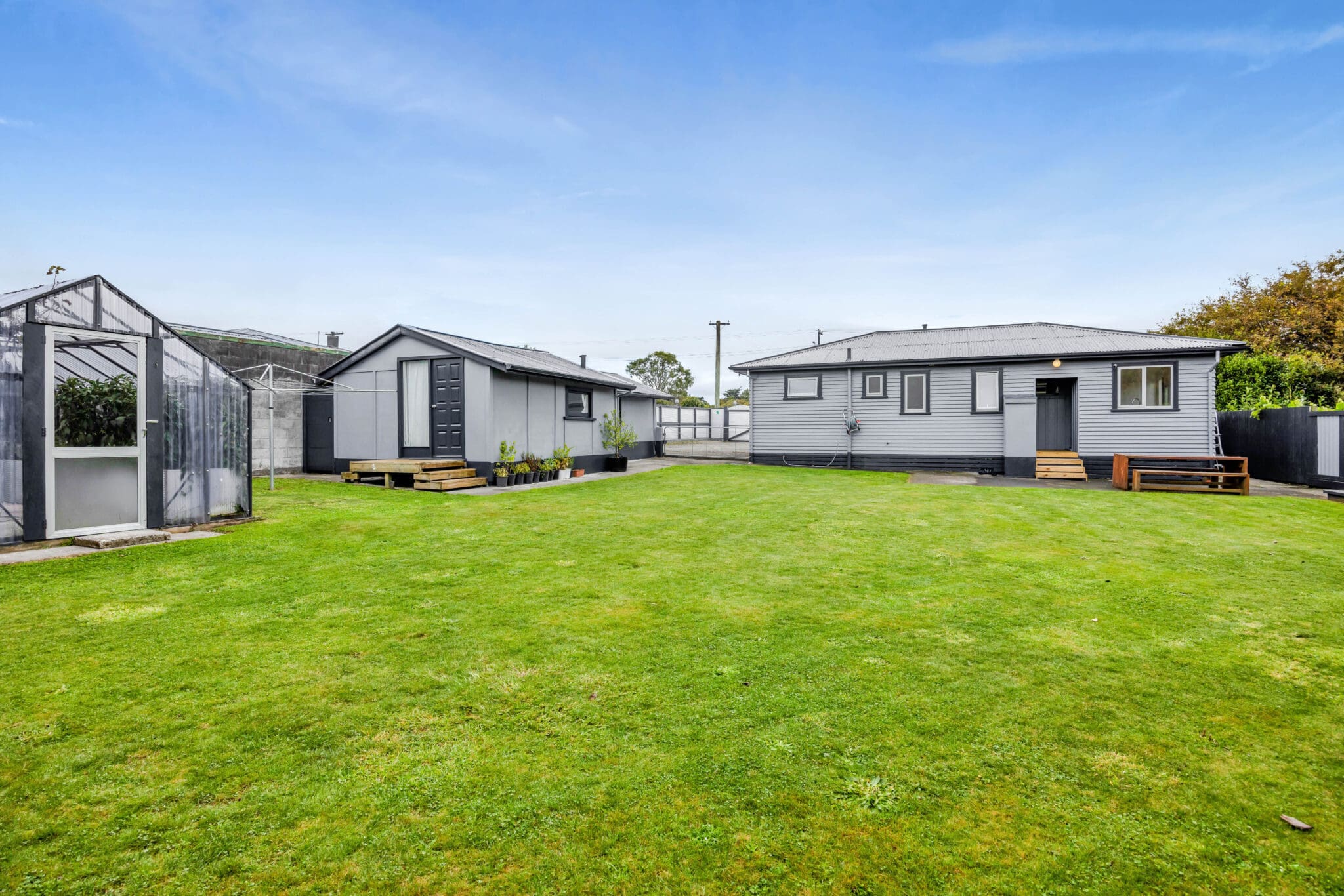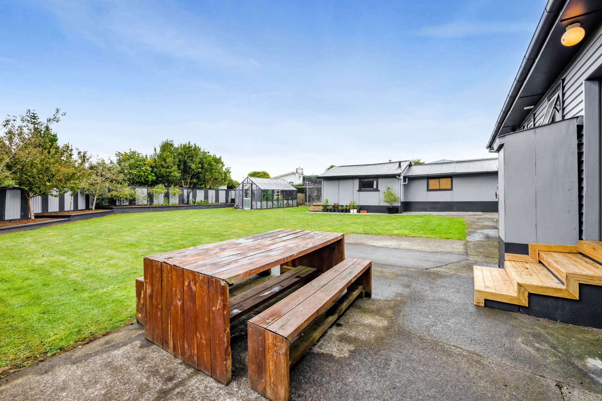 Outside, the fully fenced front yard provides privacy, security and plenty of parking spaces while the backyard is a hidden oasis with fruit trees and a greenhouse – create a self-sustainable lifestyle in town or simply enjoy the work that has been done for you. There’s plenty of room for entertaining, relaxing, or letting kids and pets play.