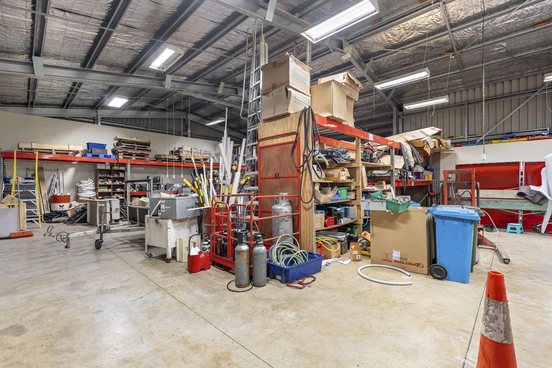 Built 10 years ago, the 589sqm building offers a high-stud workshop/warehouse, multiple offices, reception, multi-use spaces, boardroom, kitchenette and amenities. Polished concrete and carpeted flooring, along with heat pumps throughout, ensure a professional and comfortable environment.