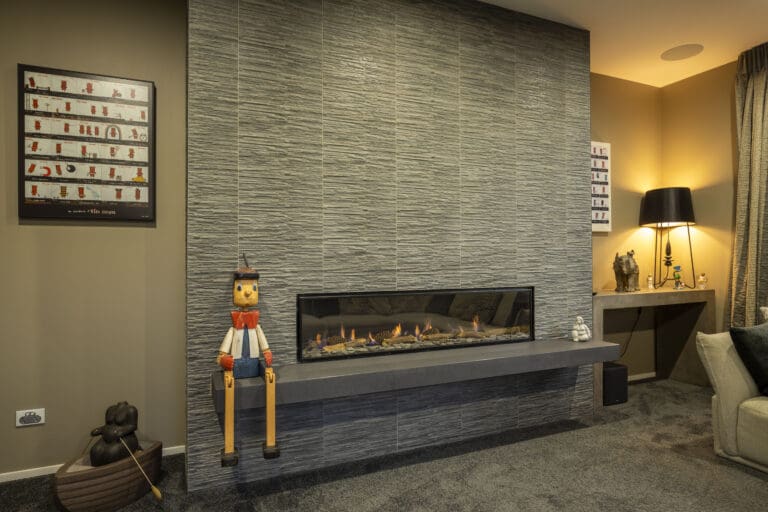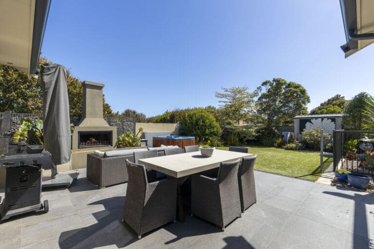 Bi-fold doors extend outdoors to a beautifully designed BBQ and outdoor area, complete with an outdoor fireplace and outdoor speakers for effortless entertaining.