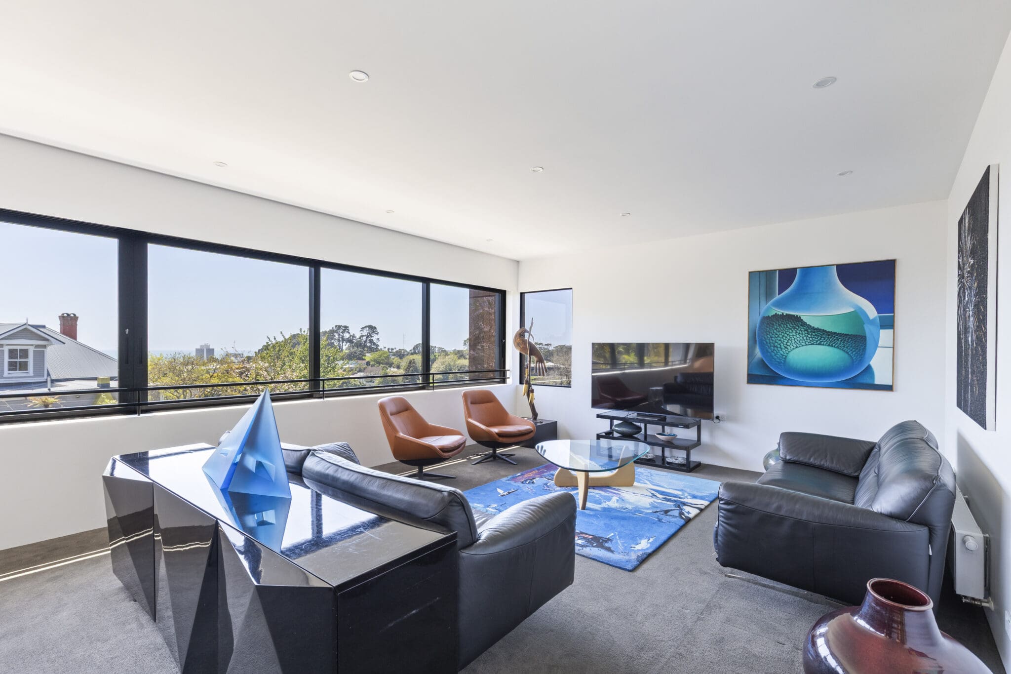 Built over two levels with sweeping city and sea views, every corner of this low maintenance high-calibre home has been crafted to balance comfort and style. Radiators throughout ensure year-round warmth, while the stairs with built-in low-level lighting and the convenient lift connecting both levels, enhances accessibility for all ages.
