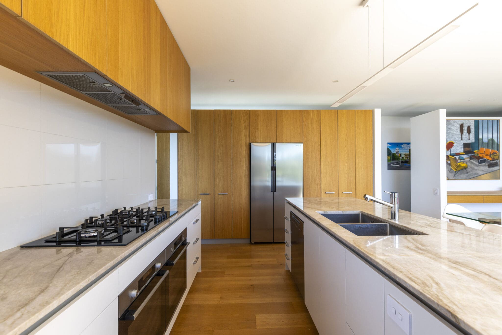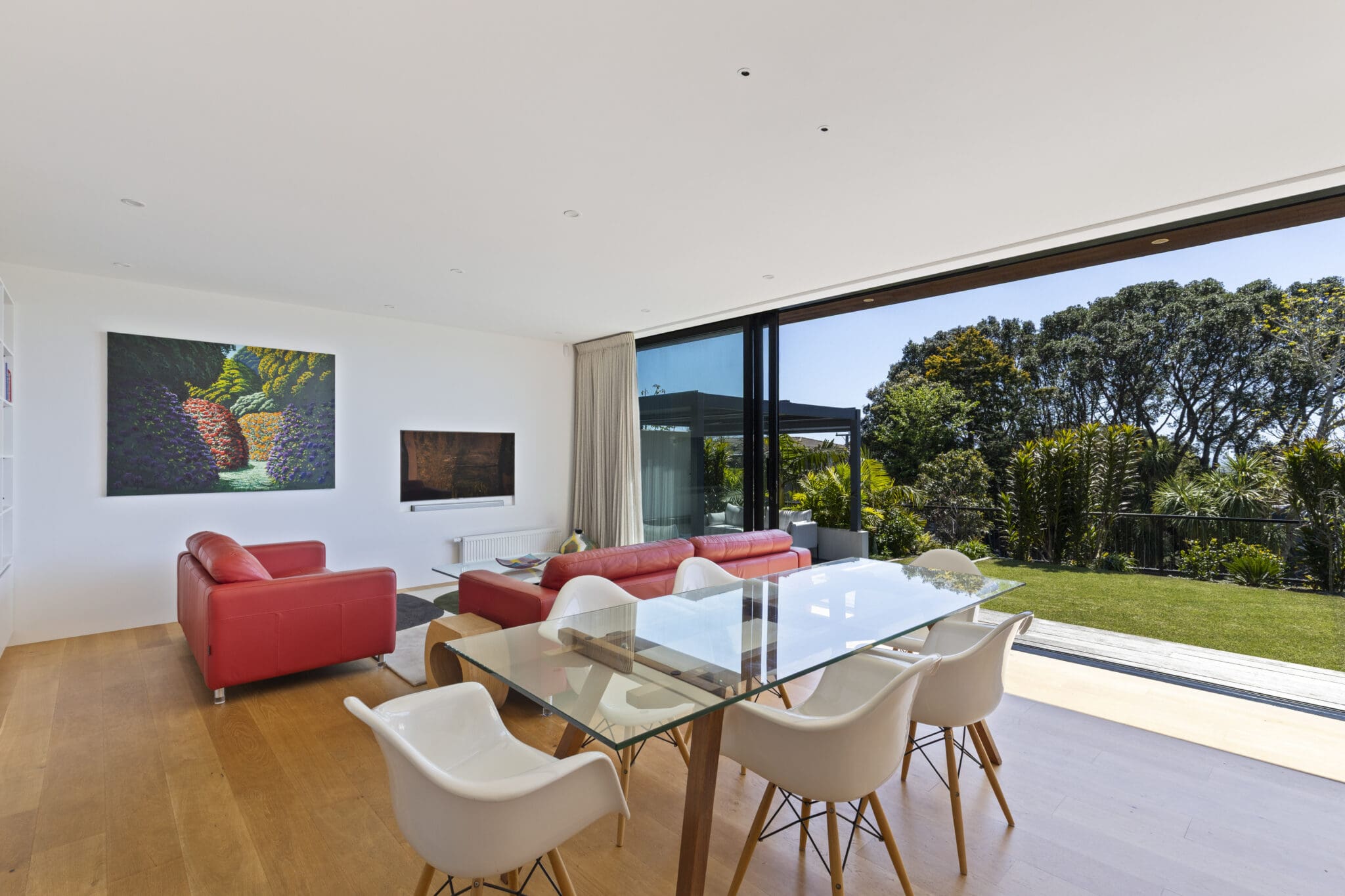 With two open plan light filled living areas you are spoilt for choice. One provides seamless indoor-outdoor space, extending to a superb entertaining area where gatherings can stretch from sun-soaked mornings to starlit evenings. The second features windows that track back, creating a unique indoor-outdoor experience that blurs the line between comfort and the outdoors. Both areas flow effortlessly to the contemporary kitchen complete with coffee station, perfect for family life or entertaining.