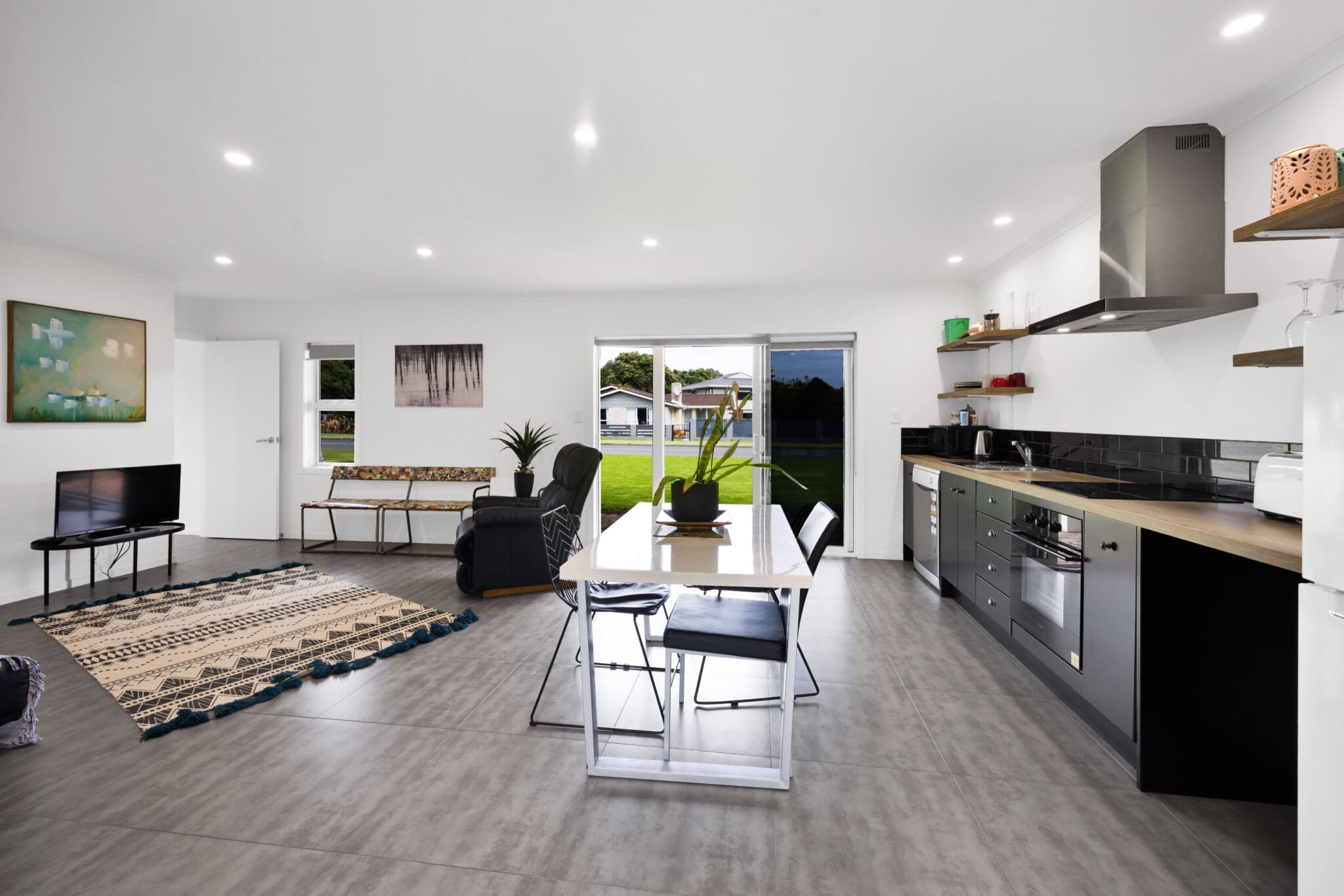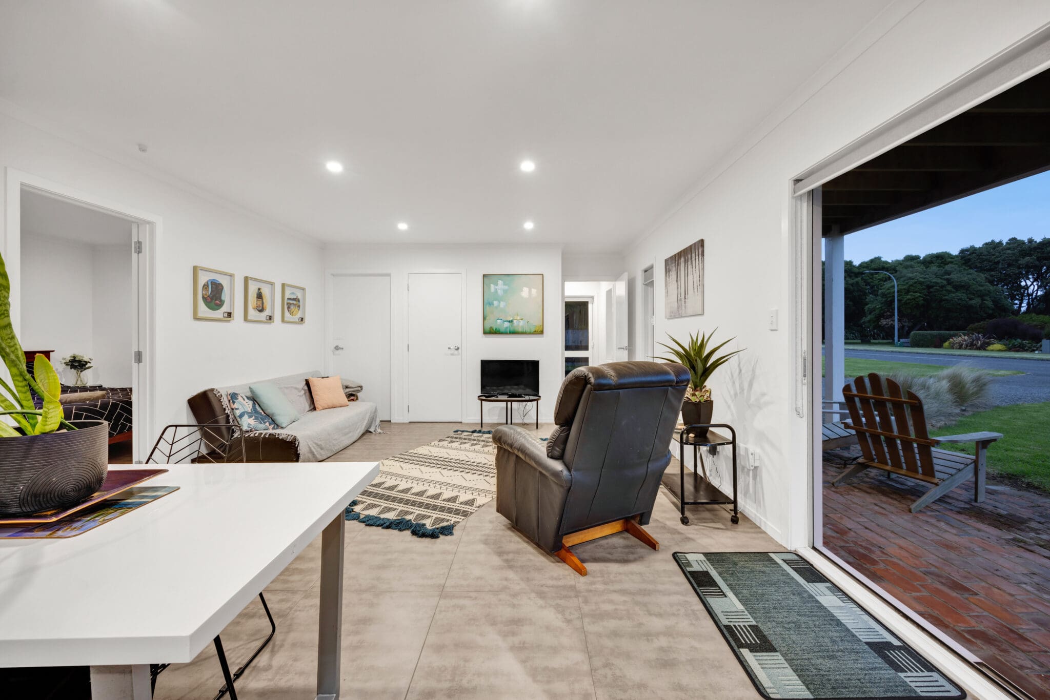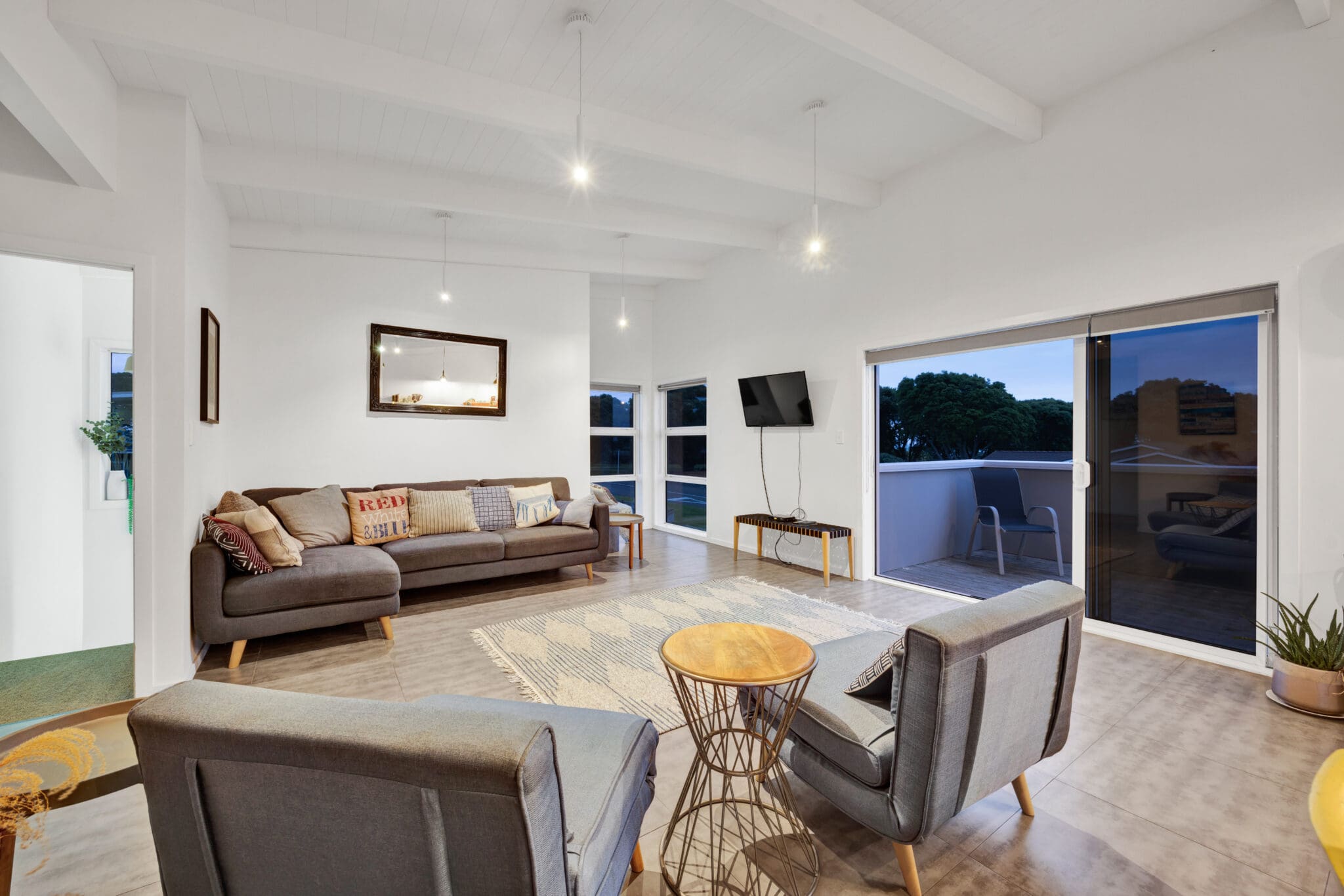 Never miss a good sunset with stunning views of the ocean from the top deck and enjoy beautiful views of Mt Taranaki on the other side. No need for a big lawn when there’s a massive grass reserve across the road. Send the kids over for some backyard cricket while you watch on from the front deck with a cold beverage.