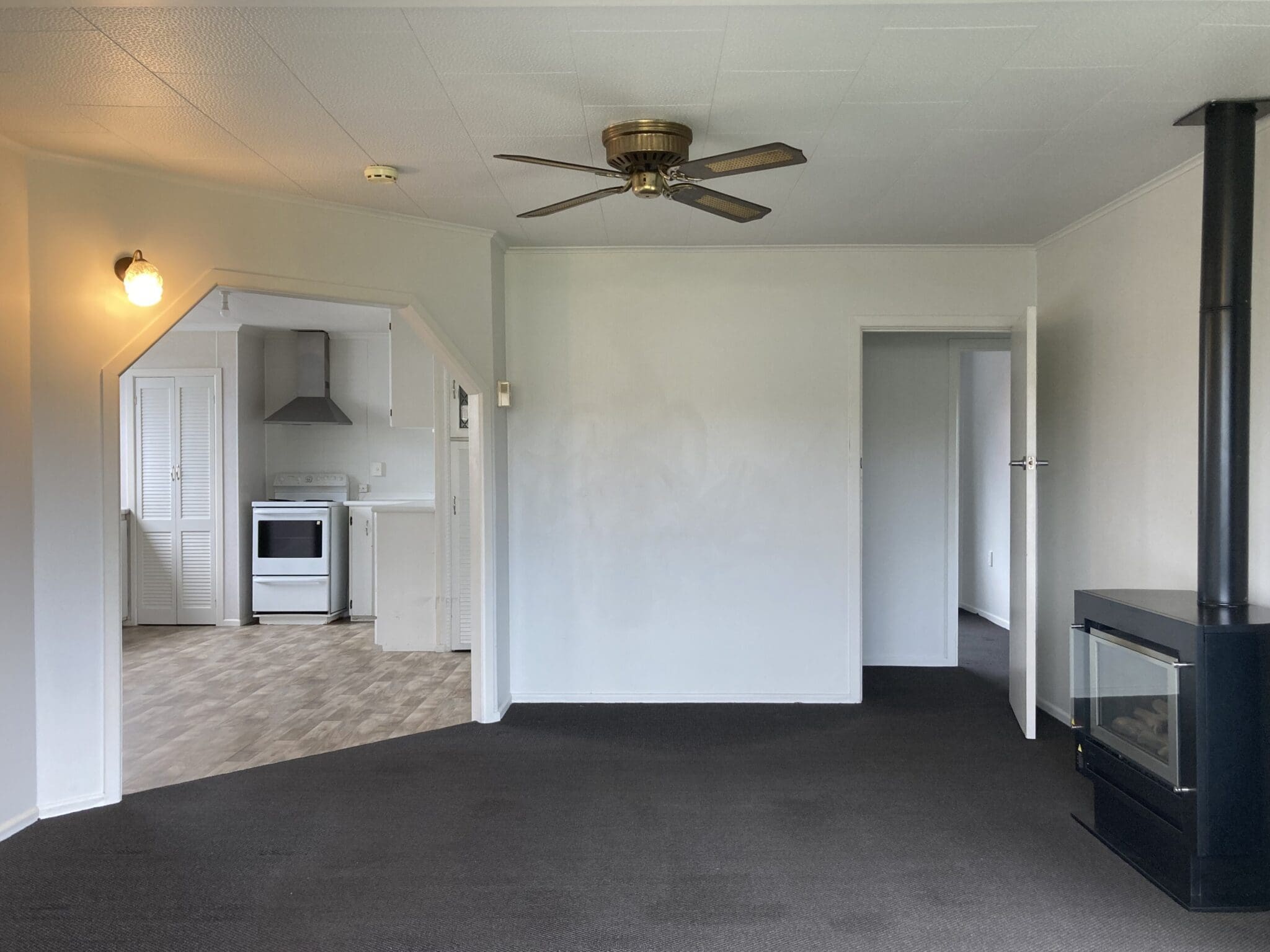 Step inside to find three comfortable bedrooms and open-plan kitchen/dining area, designed for easy everyday living. The semi open-plan lounge comes complete with a gas fire and ceiling fan for year-round comfort.