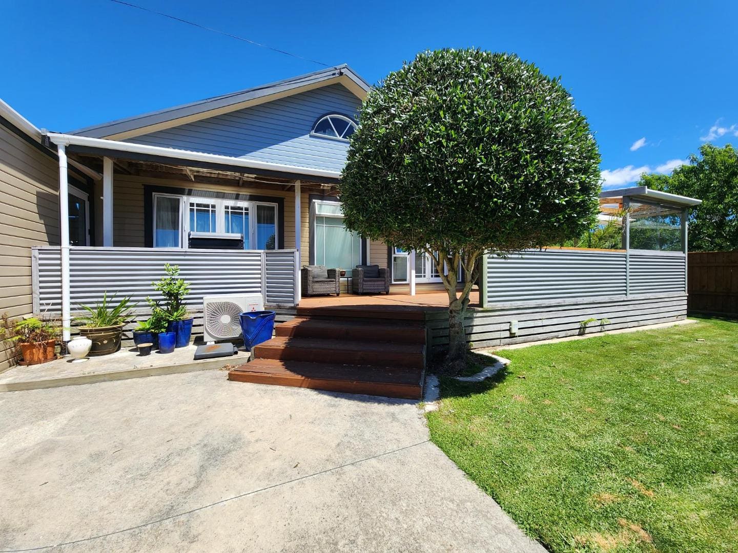 Adding to the appeal is a single garage with an additional sleep-out, offering flexible use as an extra bedroom, home office, or yoga studio. This space opens onto its own fully fenced, low-maintenance section, providing privacy and versatility.