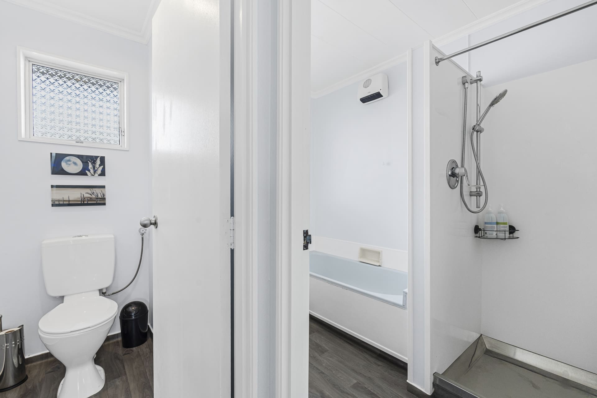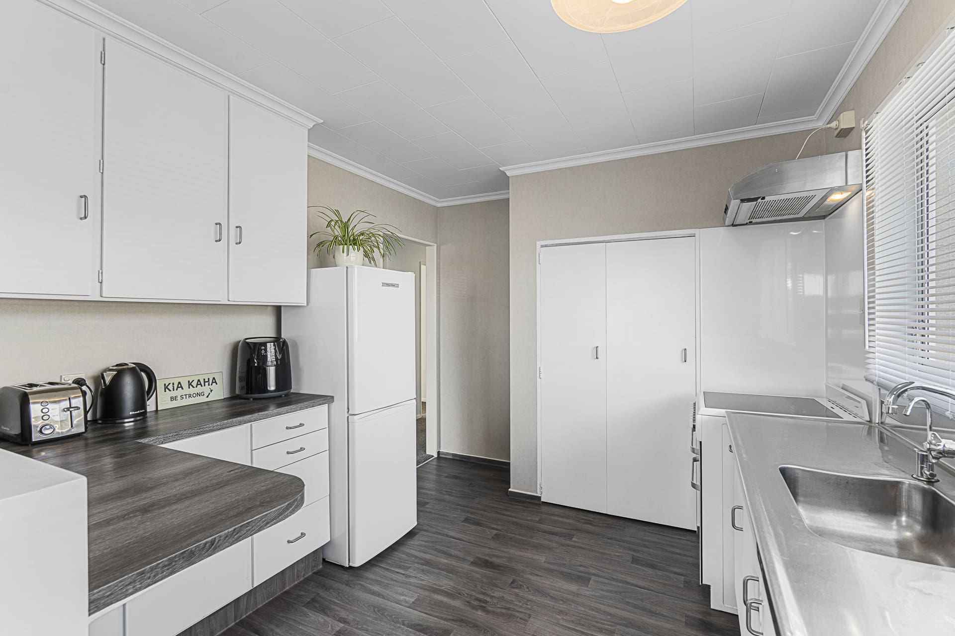 Spread across two levels, the upper floor features two generous double bedrooms, along with a toilet and hand basin. This level enjoys a beautiful outlook capturing great sun and light.