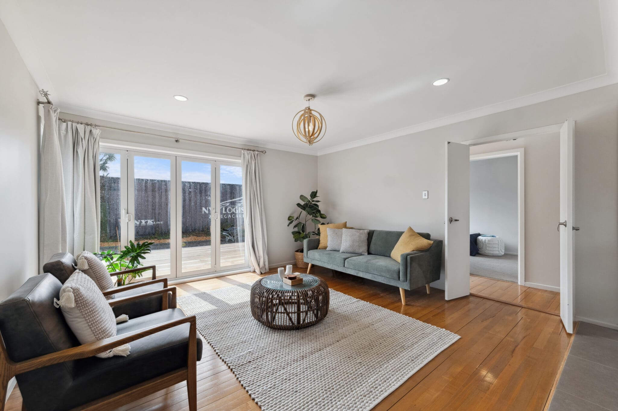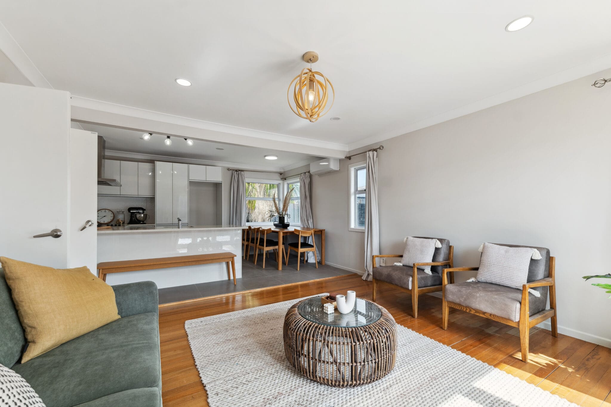 As you enter this beautiful home, you are immediately greeted by the wonderful polished floors and an open-plan layout that seamlessly connects the living spaces. The heart of the home is undoubtedly the bespoke kitchen, boasting stone countertops and the perfect breakfast bar, making it perfect for casual dining or entertaining friends while cooking up a storm. The dining area flows effortlessly from the kitchen, ensuring that gatherings are both enjoyable and engaging. The generous living room further enhances the appeal of this home, with doors that open out to a deck area, creating an ideal setting for indoor-outdoor living and summer barbecues.