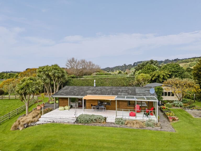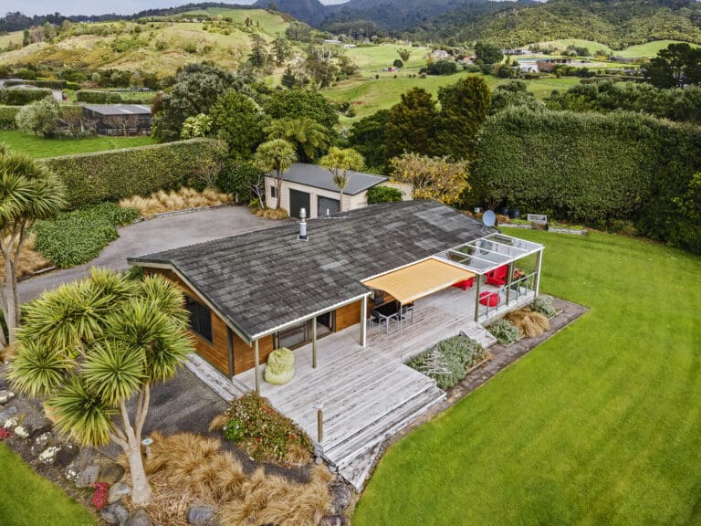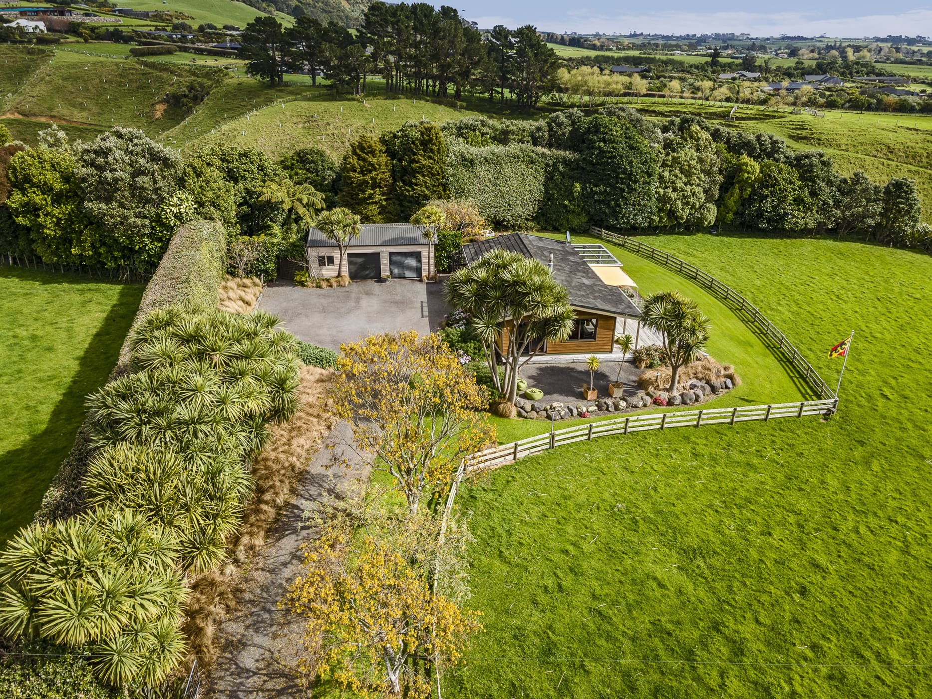 A fabulous lifestyle awaits on approx. 1Ha land, positioned in its elevated, idyllic setting with breathtaking views over the village and out to sea. Two mainly flat grazable paddocks, native plantings, orchard and tranquil bush make this one desirable property minutes from amenities, school and beach. The well presented three bedroom home boasts modern kitchen and open plan living flowing to large decking bathed in sun. A generous awning and covered end make it perfect for entertaining and enjoyment of the stunning views. Warmed well with log-fire your comfort is taken care of through those chilly months.