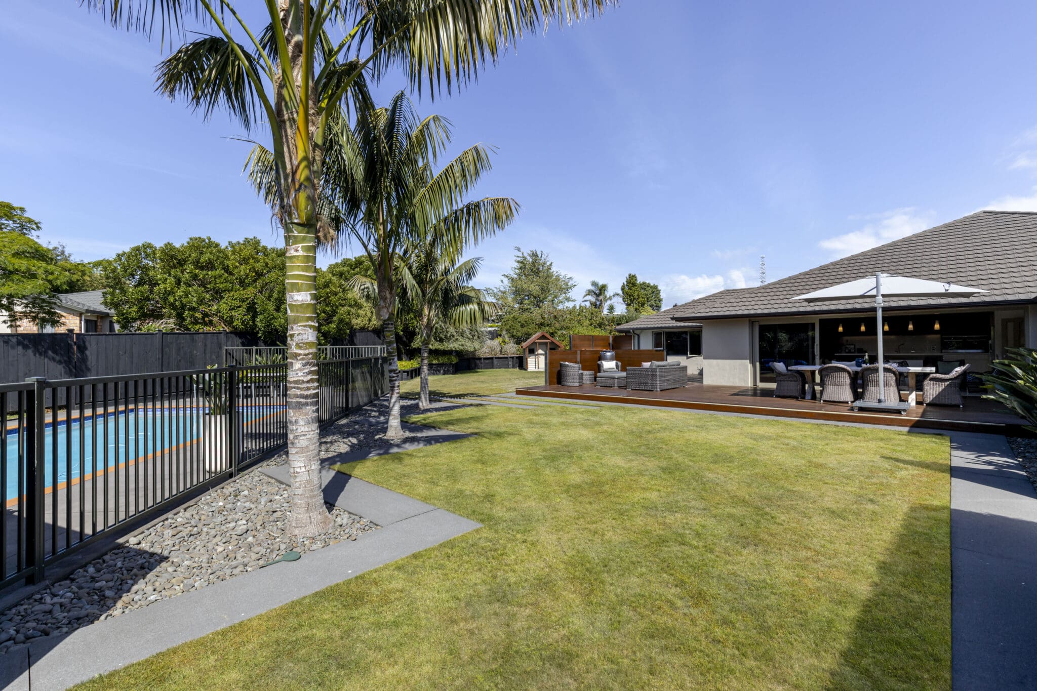 Practicality hasn’t been overlooked either. Three-car internal access garaging, off-street parking and a dedicated space for a trailer ensure there’s room for all the toys.