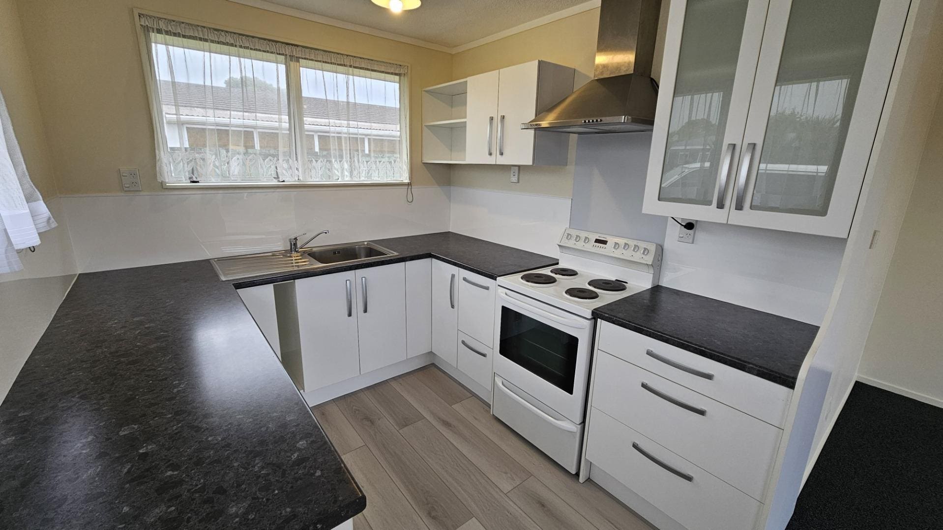 Renovated two bedroom unit in Bell Block. Open plan living, dining and kitchen. Freshly painted throughout, new carpet, new kitchen and good sized bedrooms with wardrobes. Shower and a separate toilet. Garden shed out the back and a carport available for off-street parking. Flat low maintenance section and minimal gardens, no front fencing so not suitable for pets or young children. Hickford Park is just around the corner and the Parklands shopping centre a 2-minute drive away.