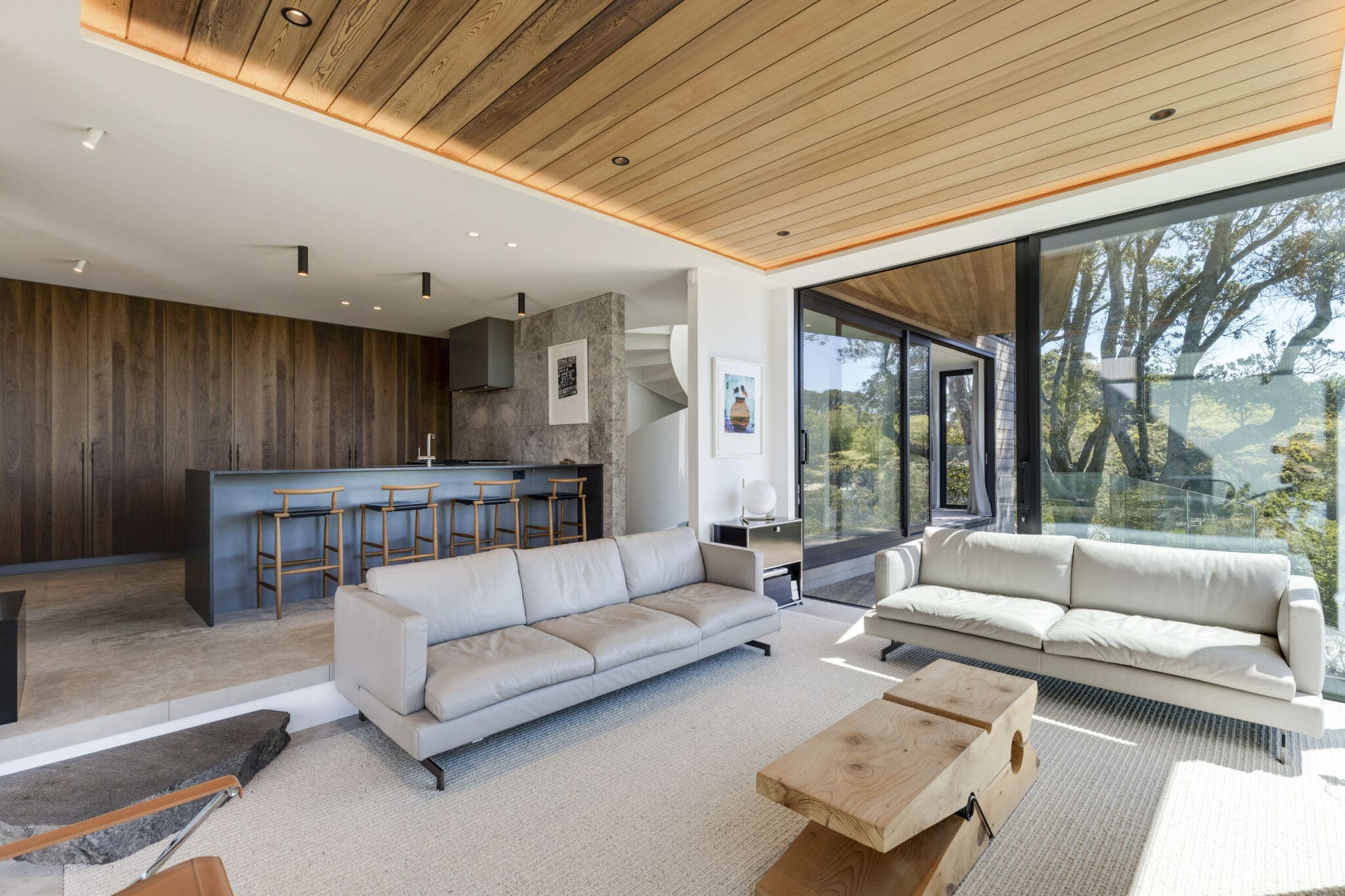 Every detail has been carefully considered. High-end materials, warm natural finishes and innovative design come together to create a home that feels both refined and relaxed. The cedar exterior blends beautifully with its surroundings, while extensive glazing draws in light and frames ever-changing views.