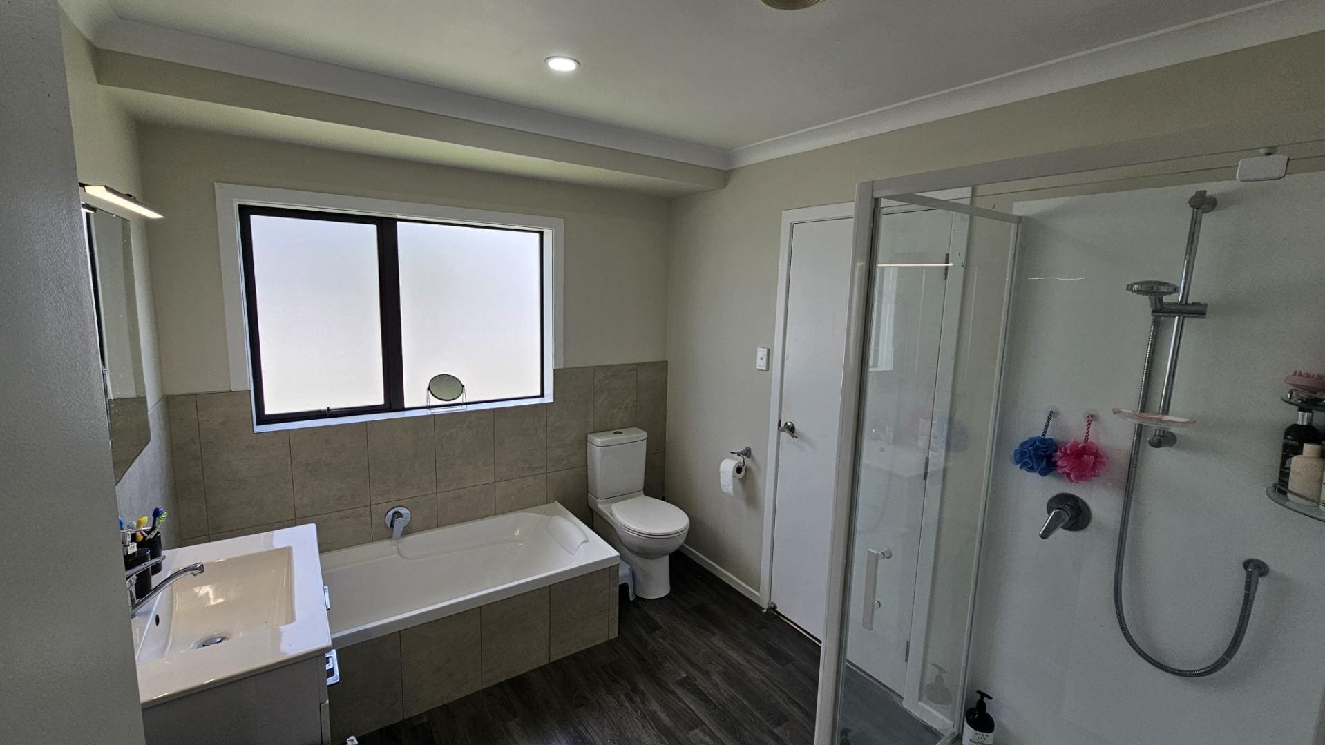 Modern three bedroom home found right in the heart of Waitara. Open plan living with a great-sized kitchen, living area and dining room that opens onto a quaint little patio. Down the hall you will find the bedrooms, separate toilet and the main bathroom that has the benefit of being a ‘Jack and Jill’ style ensuite with the master bedroom and it features a shower, bath and another toilet. Internal access double garage with auto doors and a very low maintenance section with only flat lawns to mow. Sorry no dogs at this one but a cat is okay, no smoking.
