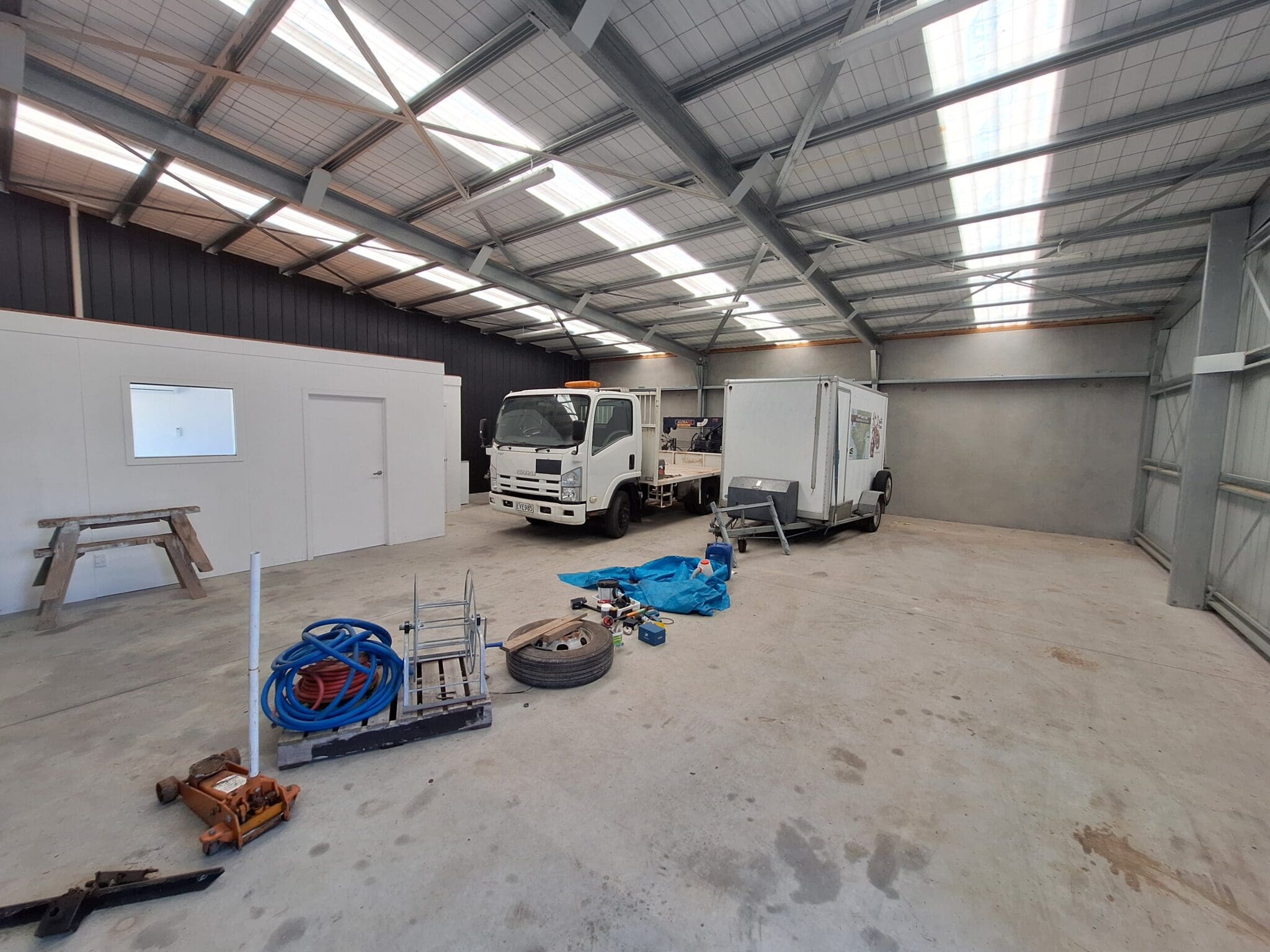 The property comprises approximately 122m2 of workshop/warehouse space complemented by a 22m2 office, providing a functional balance of work and administration areas. Access is easy via two roller doors, and the space benefits from good natural light, enhanced by LED fluorescent lighting throughout.