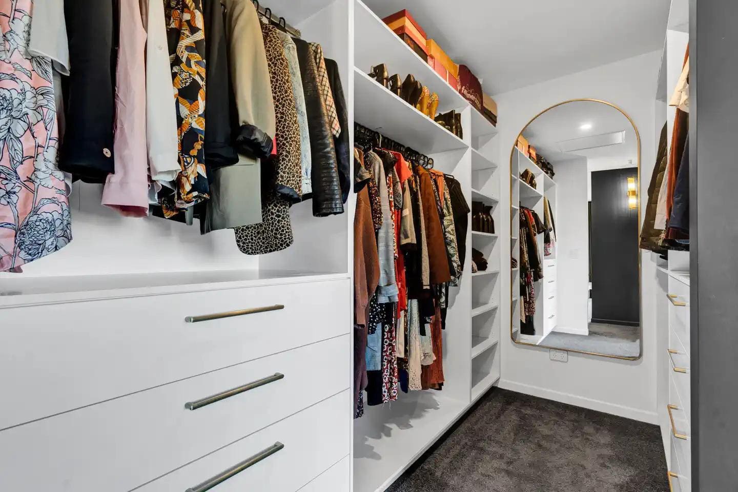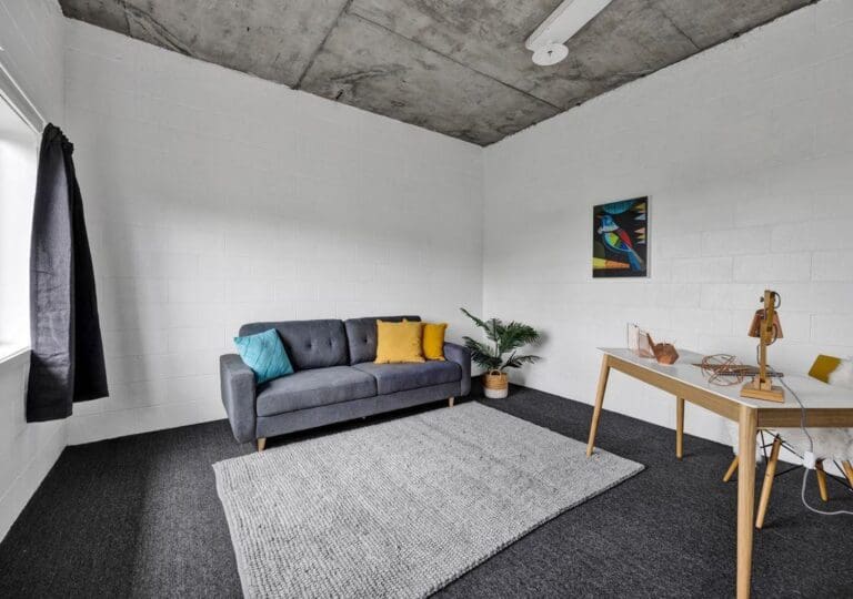 -Polished concrete floors with plush carpet and underfloor heating throughout.