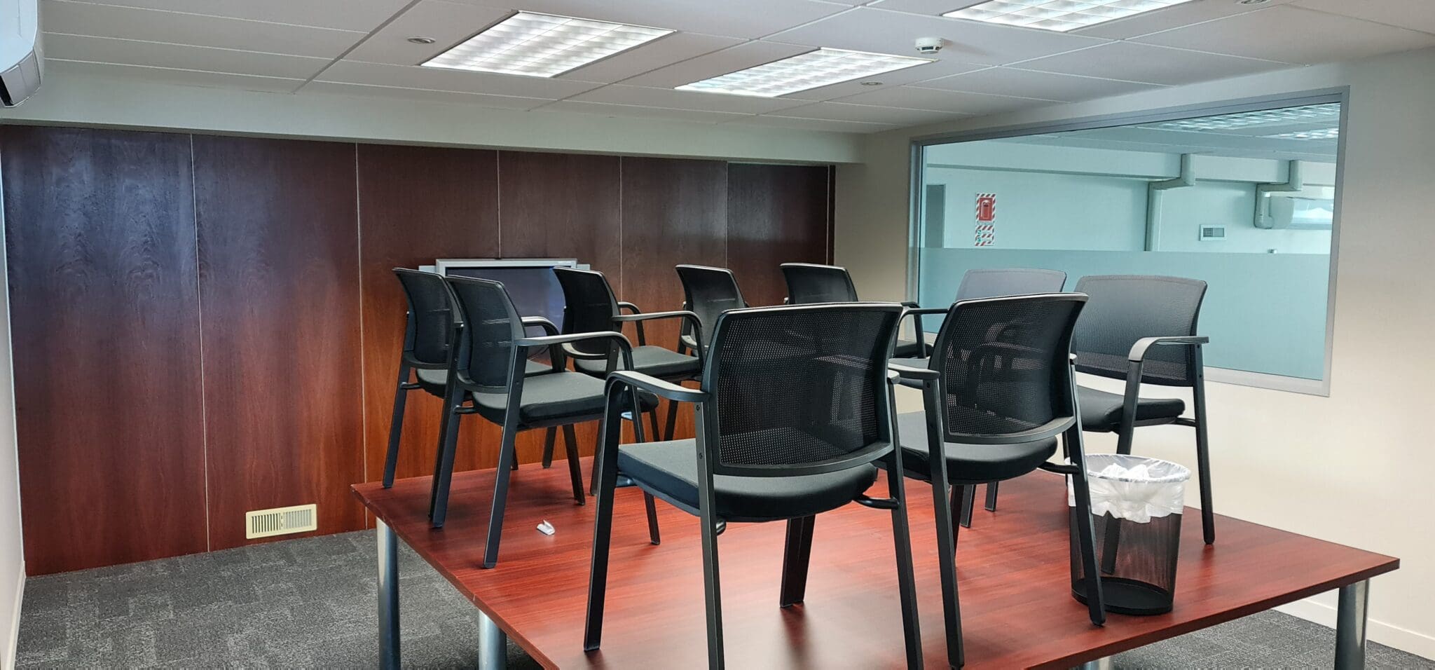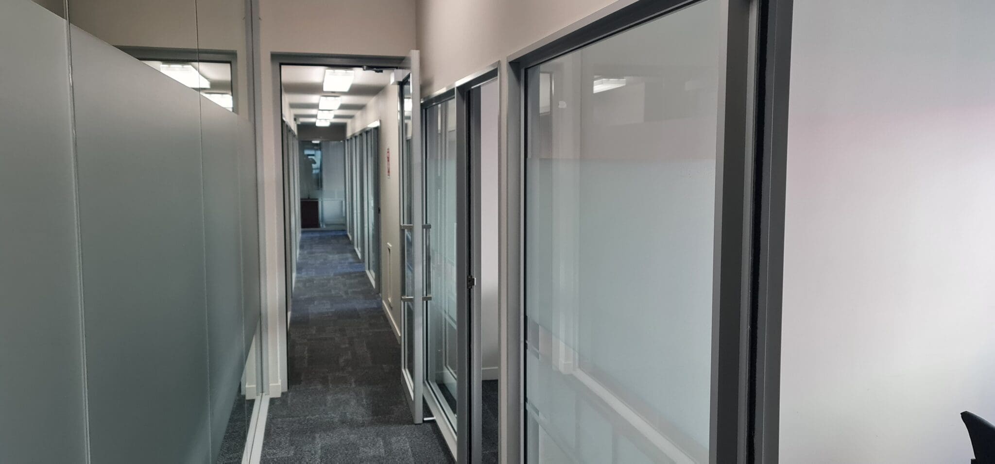 There are a number of options available, lease the total space, a 12-office wing with a boardroom and large meeting/lunchroom, or the very highly specked front offices with a very cool entrance way and separate reception.