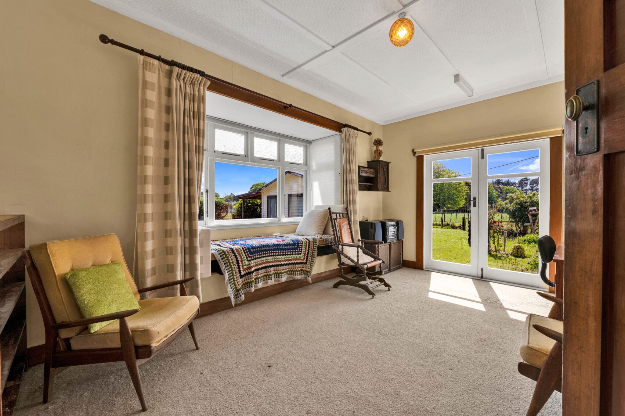 Upon entering the home, you are welcomed by a stunning interior featuring exquisite plaster ceilings and lead-lined windows that radiate warmth and character. The spacious lounge provides an ideal space for relaxation, complete with charming French doors that open out onto a lovely veranda. This outdoor area invites you to bask in the sounds of nature, surrounded by luscious greenery, where bird song fills the air among the trees. The interior also benefits from a heat pump, ensuring comfort and warmth throughout the changing seasons.
