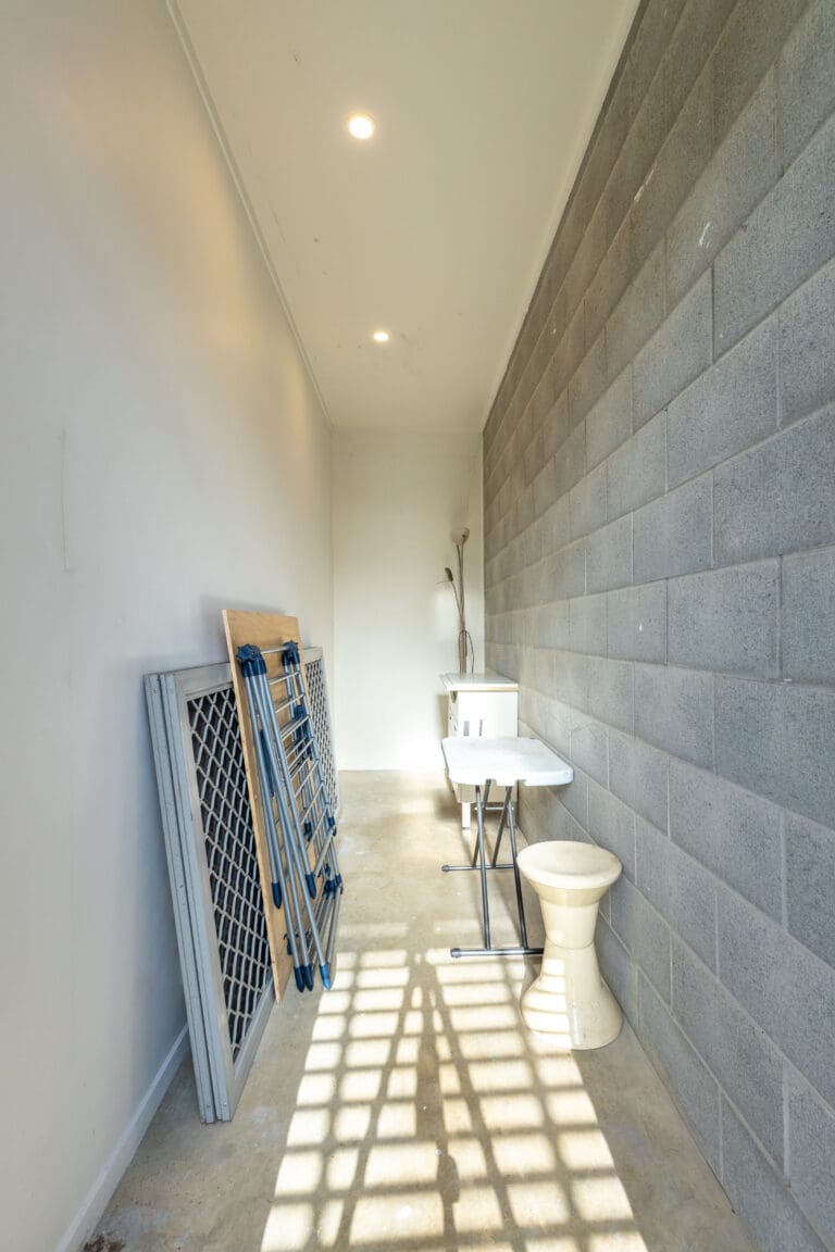 The main dwelling boasts three spacious bedrooms, including a master suite with an ensuite bathroom. Its open-plan layout is an entertainer’s dream, featuring a contemporary kitchen with a cleverly concealed walk-in pantry that will delight cooking enthusiasts. The home also includes 2.7m-high ceilings and extra-wide 1.5m hallways, enhancing the sense of space and luxury. Outside, adjustable sliding screens on the veranda provide excellent protection from the elements, adding to the home’s versatility.