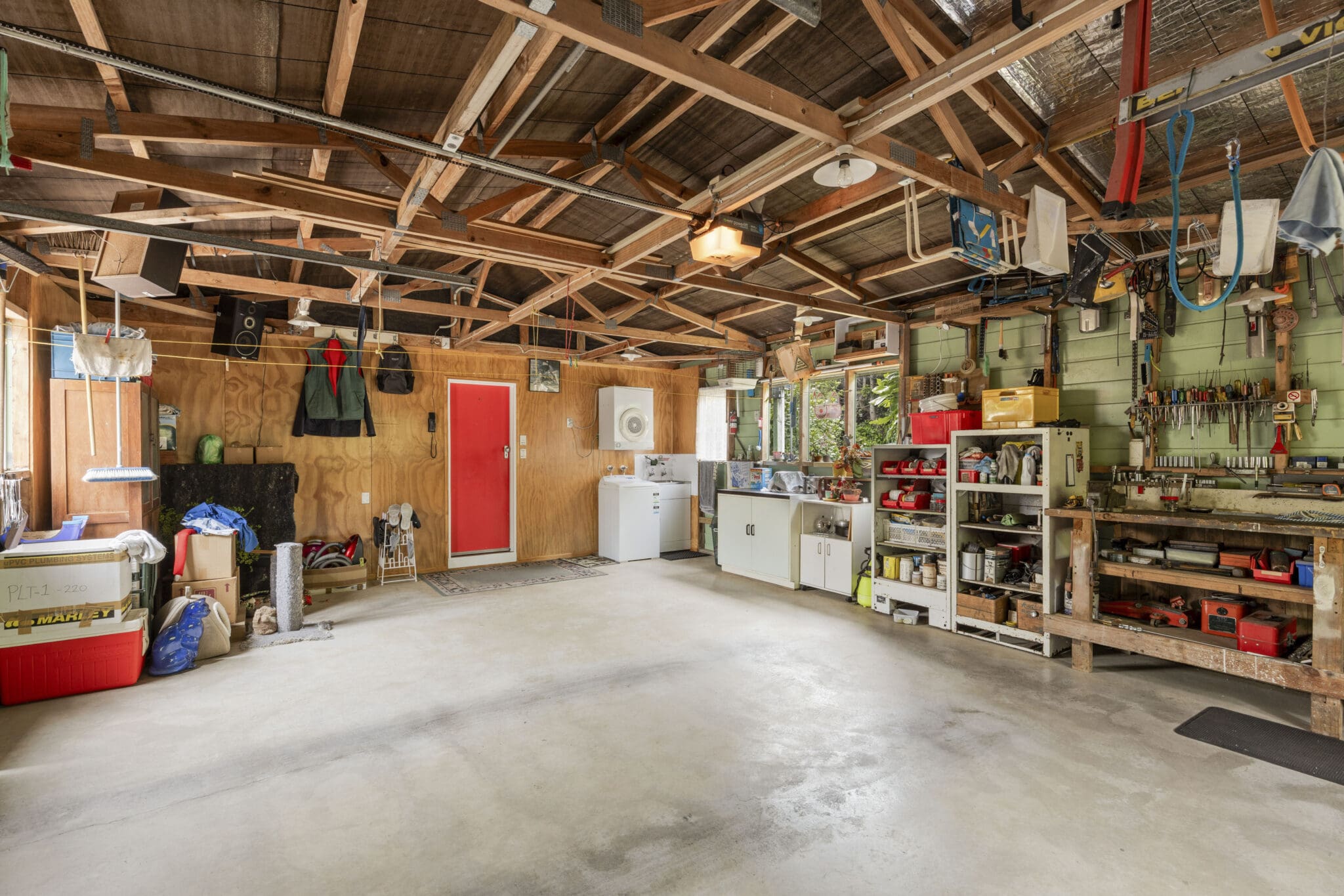 A generous double garage with internal access, a workshop area and off-street parking adds everyday practicality.