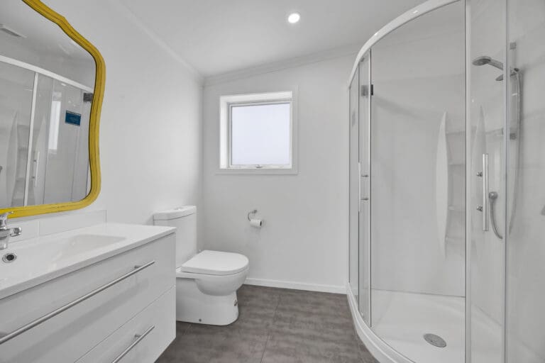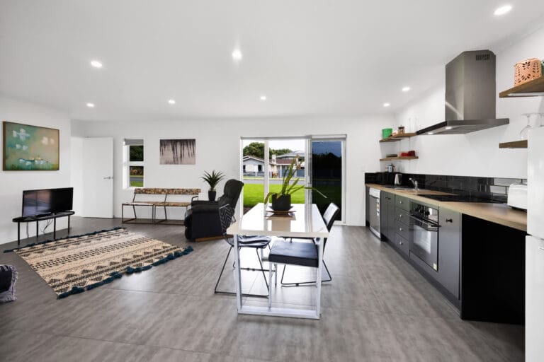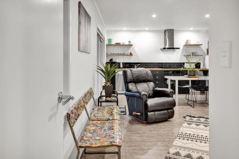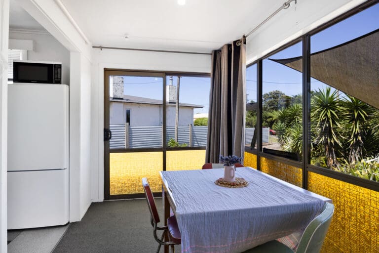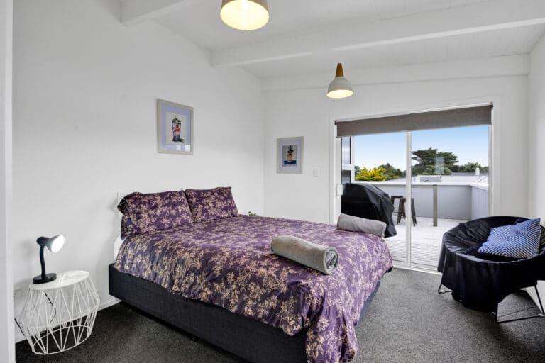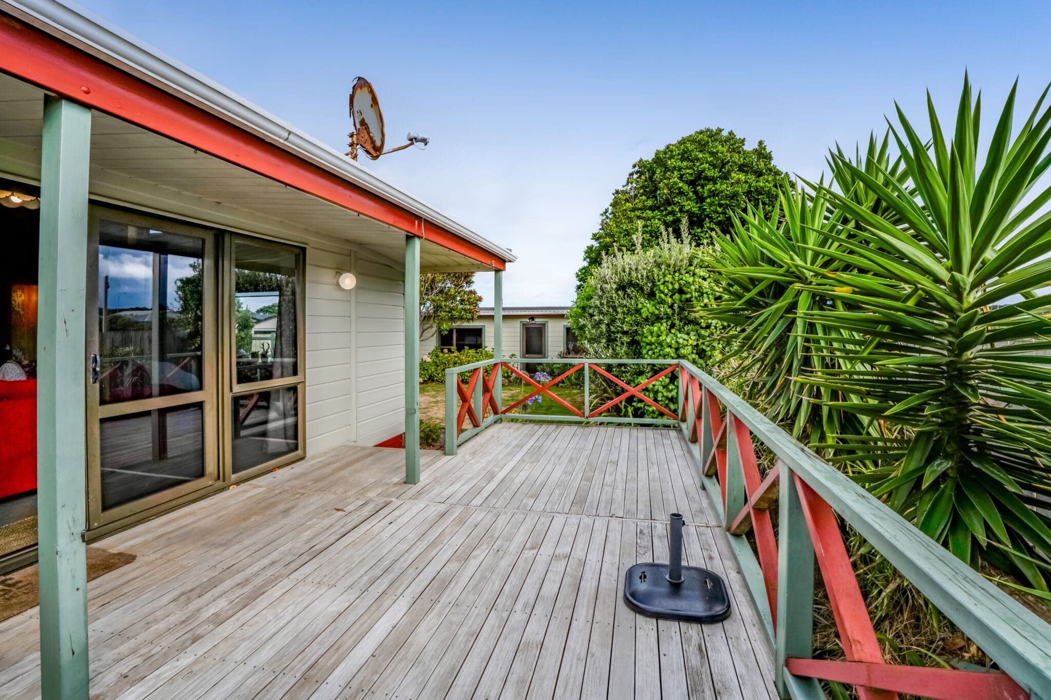 Spacious open plan living, with a lovely private deck leading off the lounge and kitchen area – it’s easy to imagine enjoying your morning coffee here in the sun. Step outside and you’ll hear the waves crashing at Middleton Bay on big tides or a multitude of sport being played at the fields nearby.