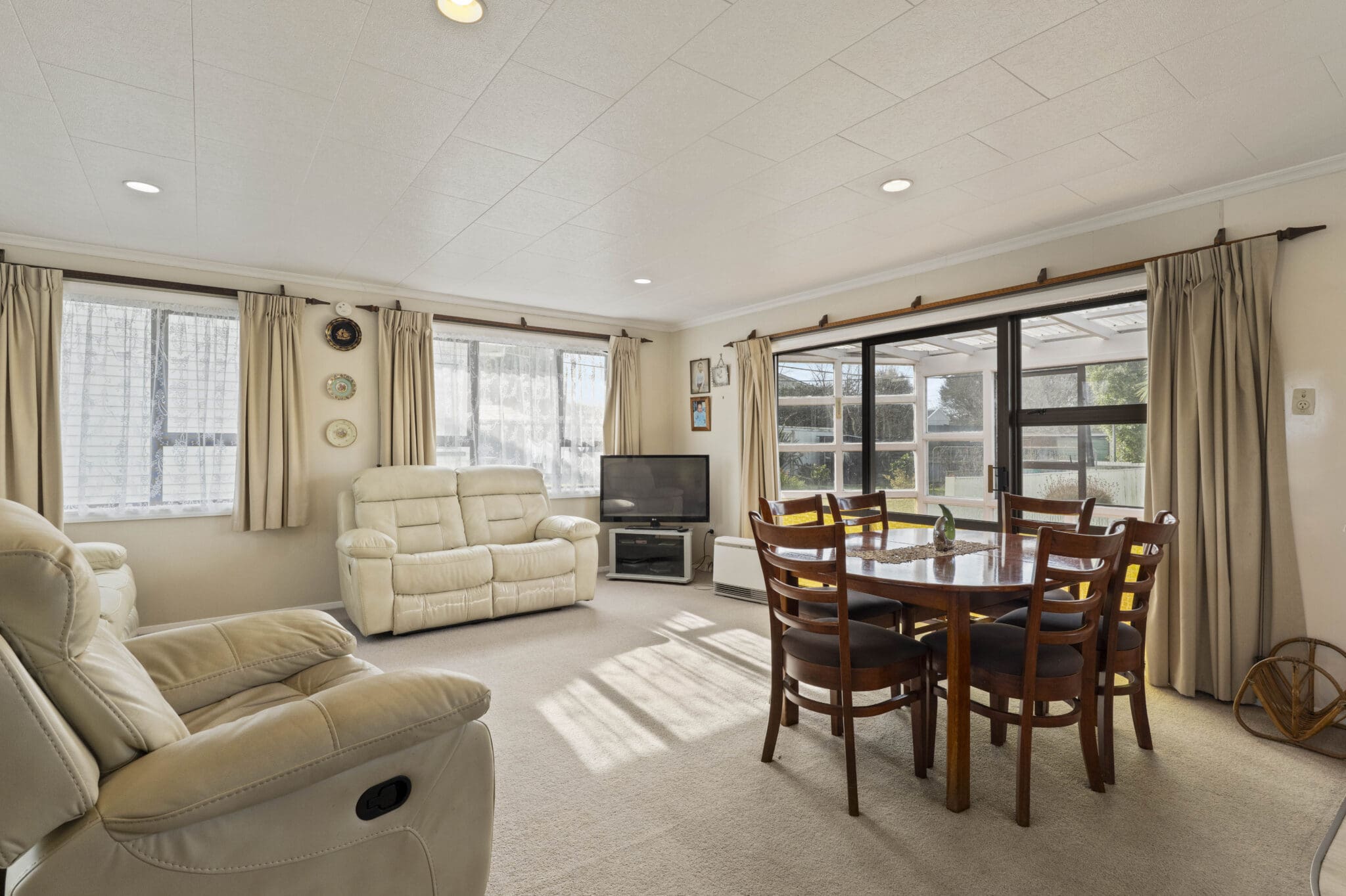 The home features three double bedrooms, each with ample wardrobe space, ensuring comfort and practicality for every member of the family. The main bathroom is thoughtfully designed with a wet floor shower, vanity, and toilet, providing a modern and functional space for your daily routines. Comfort is assured year-round with both a heat pump and gas heating, providing efficient climate control regardless of the season. The home also boasts insulation and is partly double glazed.