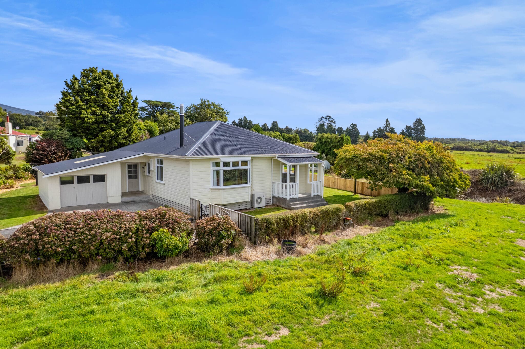 Set on approximately two acres of land, this renovated four-bedroom home offers the perfect blend of modern living and peaceful rural charm.