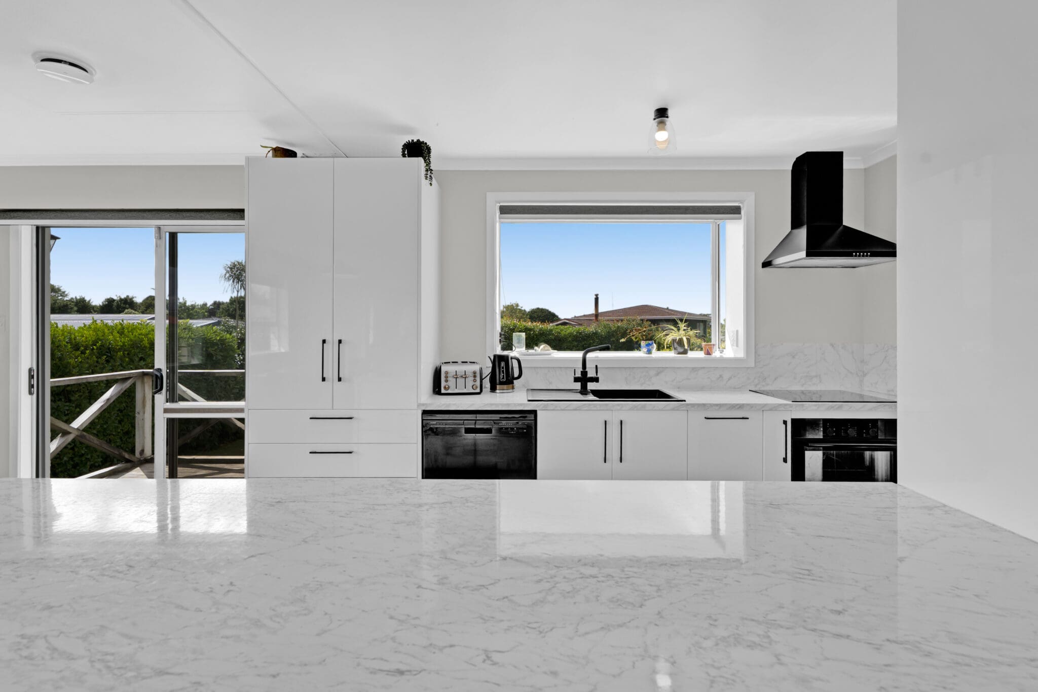 Upstairs is where the home truly shines, featuring generous open-plan living that feels light, airy, and effortlessly connected. Large bi-fold doors open out to a split-level deck, creating seamless indoor-outdoor flow and a fantastic space for entertaining, summer BBQs, or relaxing while keeping an eye on the kids. The modern kitchen is a standout, complete with a beautiful breakfast bar that naturally becomes the hub of the home.