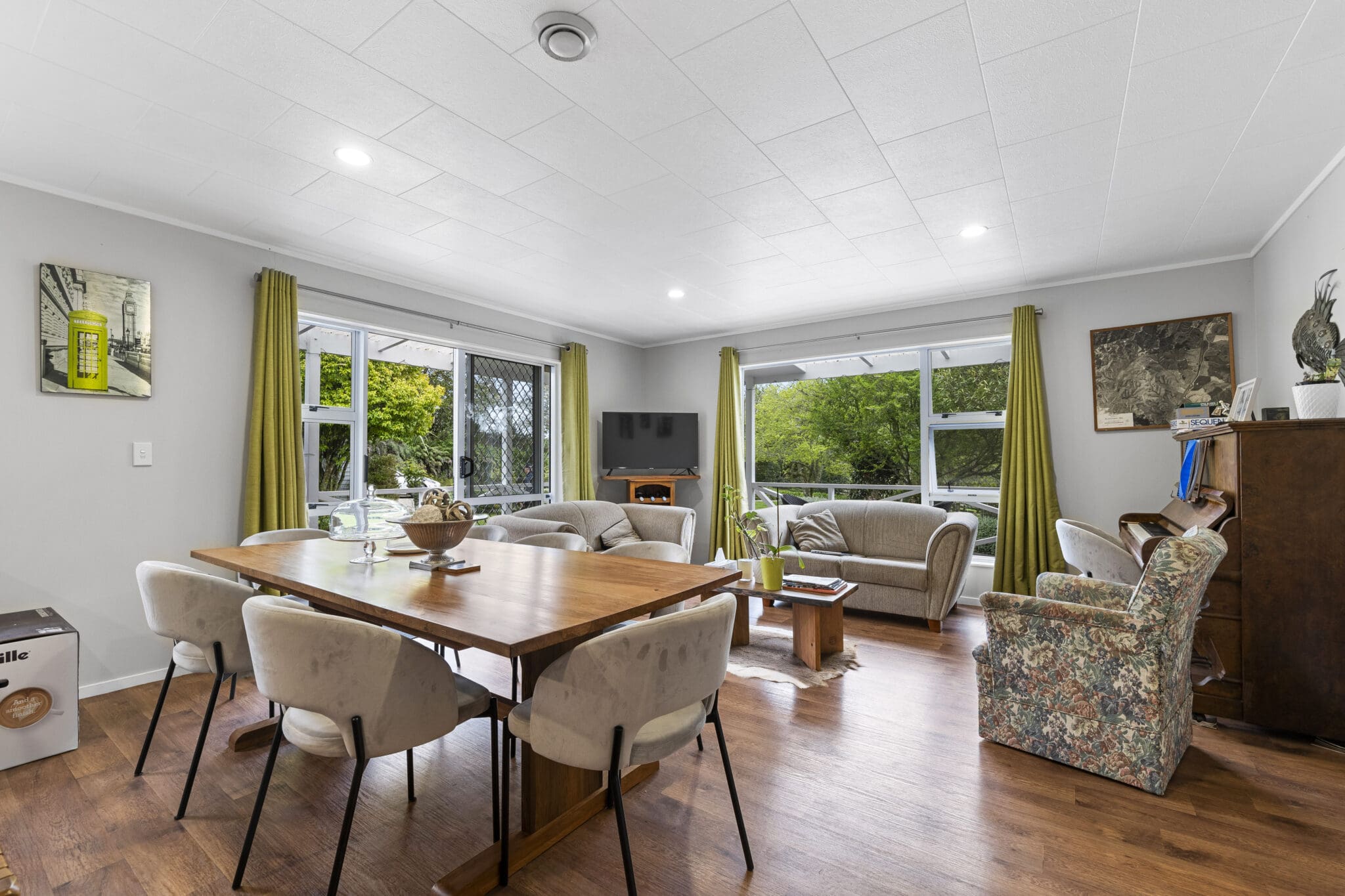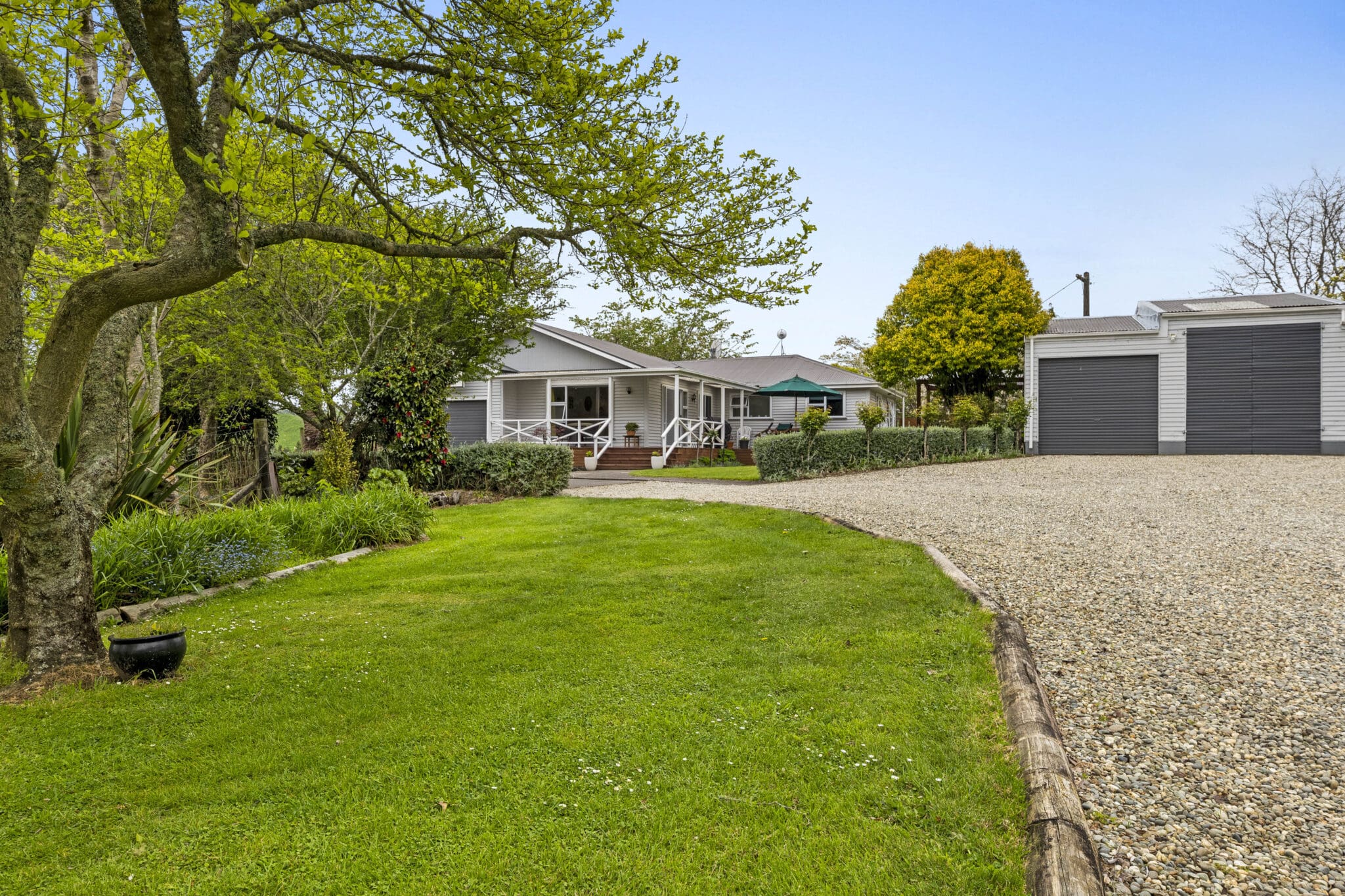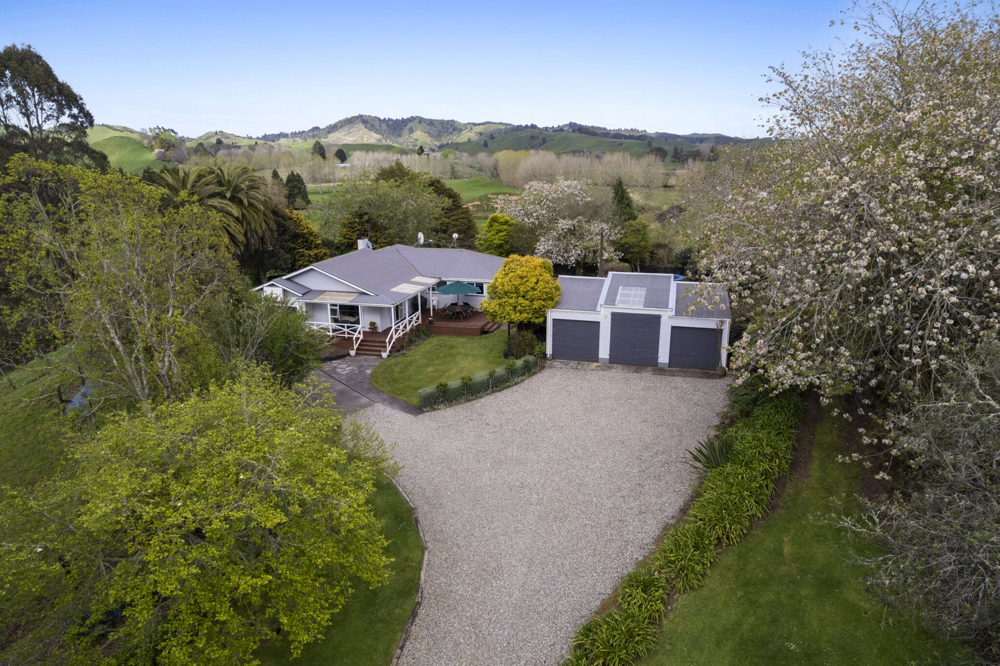 Set back off the road up a tree lined driveway is the excellent family home which comprises of 3 bedrooms and 2 bathrooms with an open plan kitchen dining and a separate lounge, heating is by way of a log fire.