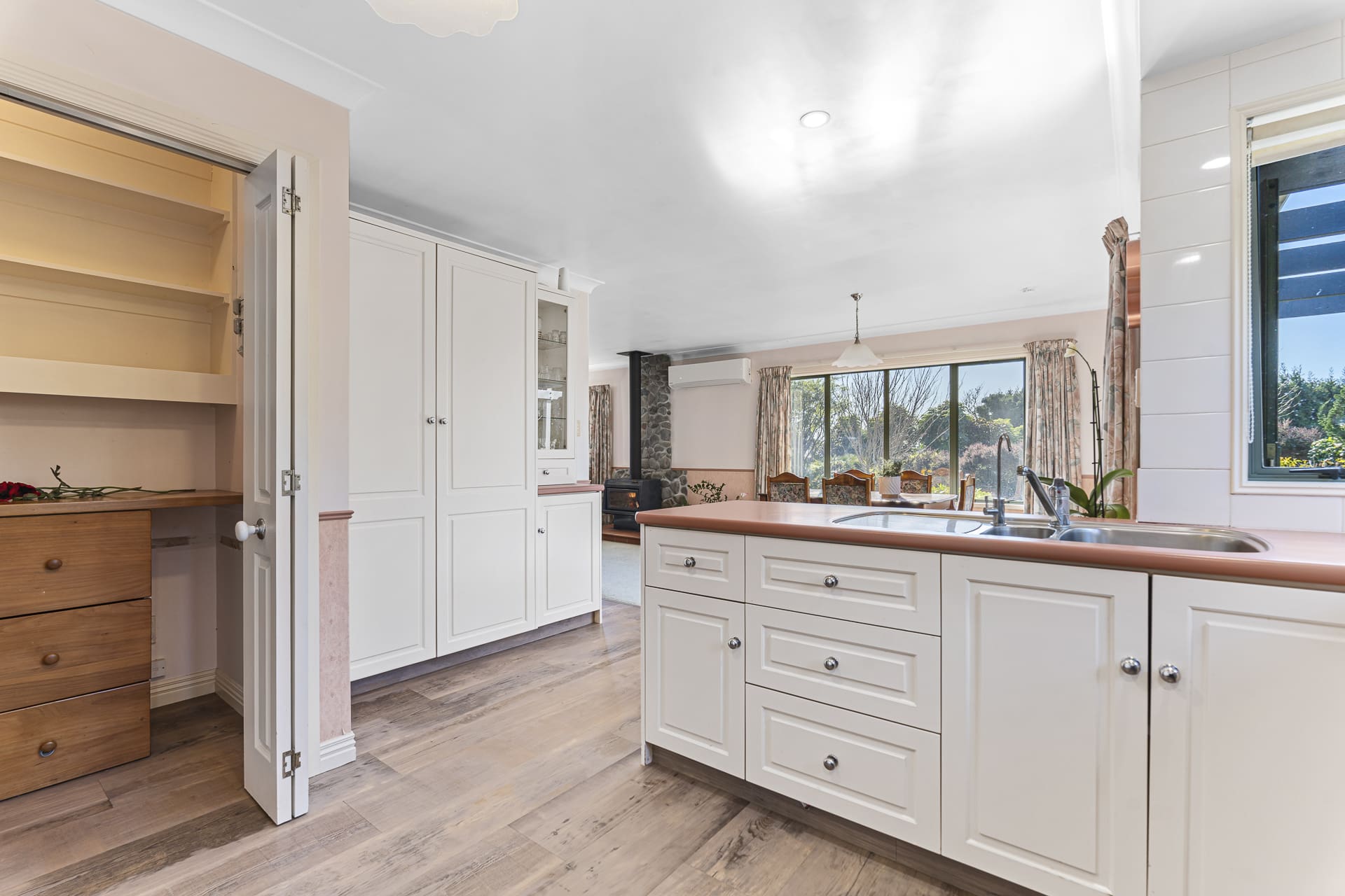 Outside, the private garden delivers daily tranquility, complete with a greenhouse and veggie gardens. The home offers ample garaging, an internal access single and the addition of a separate singe garage with workshop, perfect for extra storage or future development.